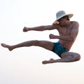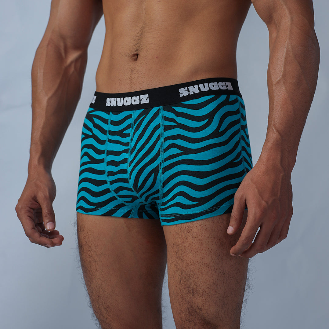 Turquoise briefs with bold black stripes for a sporty, modern look with cloud-soft comfort.