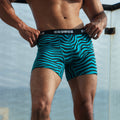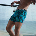 Sporty turquoise boxers with black stripes lightweight, stylish, and ultra-comfortable.