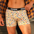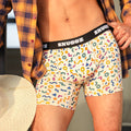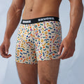 Beige boxers featuring colorful elements for a playful, bold vibe with an airy fit.